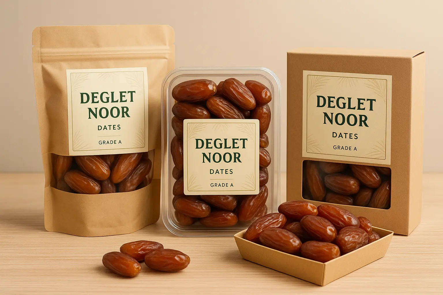 Authentic Algerian Deglet Noor dates, graded A, B, C, D for every market need.